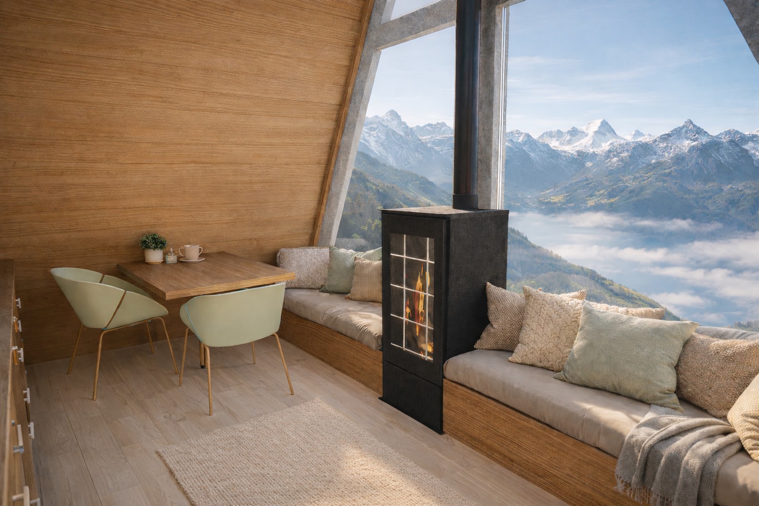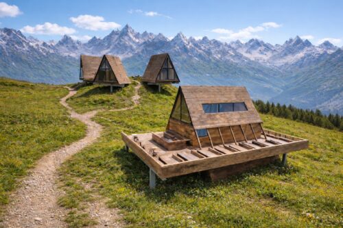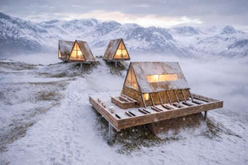 Inmitten der beeindruckenden Berglandschaft Vorarlbergs im Arlberg-Gebiet entsteht ein Projekt, dessen Architektur die markanten Spitzen der umliegenden Gipfel aufgreift, abstrahiert und als identitätsstiftendes Gestaltungselement neu interpretiert. Auf Basis der Inspiration durch die umliegende Bergwelt, entwickeln sich elegante A-Frame Häuser, welche der Beherbergung von Gästen sowie einem kompakt gehaltenen Restaurationsbereich dienlich werden. Die Baukörper fügen sich solcherart in die alpine Umgebung ein und schaffen ein Ensemble, welches den Charakter des Ortes stärkt. Die Apartments sind dabei bewusst zu den umliegenden Bergen orientiert, sodass sie nach jenen auch benannt werden können – etwa Apartment Mohnenfluh – und gleichzeitig eindrucksvolle Panoramen eröffnen. Das Tragwerk der Gebäude wurde derart gewählt, dass es den Eingriff in den Boden minimiert und einen leichten, fast schwebenden Charakter erzeugt. Der Standort ist ganzjährig mühelos erreichbar, da Skilifte, die Skipiste und mehrere Wanderwege direkt an das Grundstück angebunden sind. Zudem wird das gesamte Projekt autark und nachhaltig entwickelt, um einen ressourcenschonenden, ganzjährigen Betrieb zu ermöglichen – ein harmonisches Zusammenspiel aus Landschaftsbezug, funktionaler Präzision und zeitgenössischer alpiner Architektur.