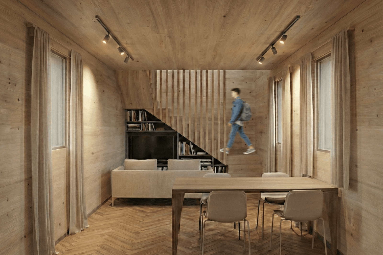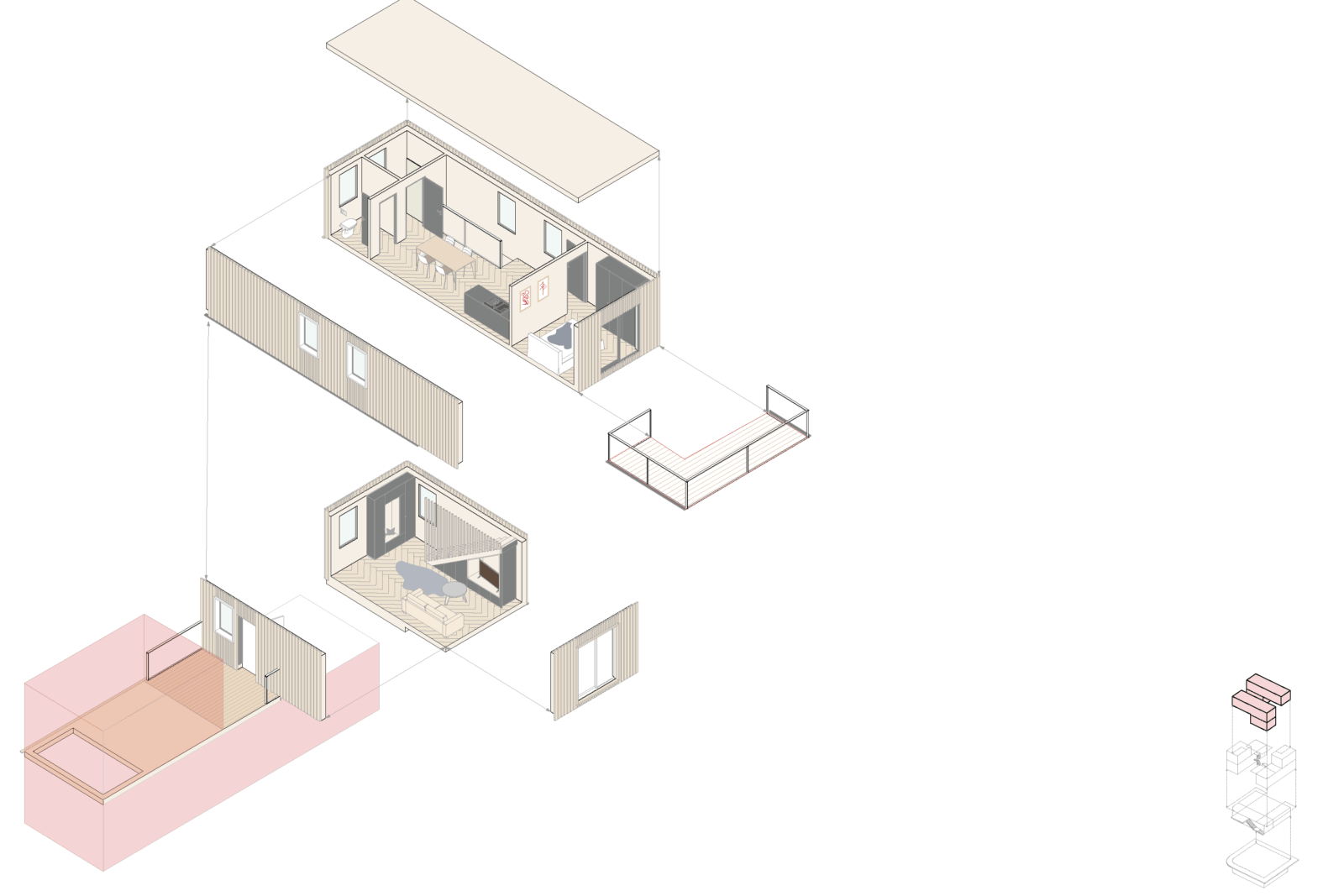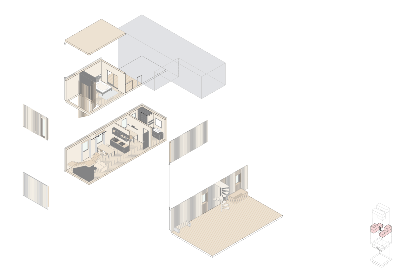 Das vorliegende Projekt stellt einen Ansatz für ein zeitgemäßes Studentenwohnheim, welches auf einem modularen Bausystem basiert, dar. Die Leitintention: nachhaltig und derart gestaltet, dass “echtes” Zusammenleben entstehen kann. Im Zentrum steht ein sogenanntes L-Modul, welches sich stapeln und überlagern lässt. Durch die daraus entstehende Struktur werden spannende Zwischenräume generiert– halböffentliche Bereiche und gemeinschaftliche Zonen, die gezielt Begegnungen fördern. Genau diese Orte machen ein lebendiges studentisches Umfeld aus und sollen mit gemeinschaftlichen Themen wie Kochbereichen oder Gemeinschaftsgärten bespielt werden. Im Erdgeschoss öffnet sich das Projekt zur Stadt hin: ein Café, Arbeitsbereiche und die Wohnheimorganisation schaffen eine offene, zugängliche „Basis“. Diese Zone bildet die Schnittstelle zwischen Bewohnern und Umfeld und macht das Gebäude zu einem aktiven Teil des Quartiers. Wesentlicher Gedanke hinter “WeiterWohnen” ist die Transformation, welche noch weitergedacht werden soll! Die Module sind nicht nur für die Phase des Studentenwohnens gedacht, sondern können durch Neu-sortierung nachfolgend aus als Tiny Houses weiterverwendet werden. So entsteht ein nachhaltiger und ressourcenschonender Lebenszyklus der einzelnen Bauelemente. Insgesamt verbindet “WeiterWohnen” modulare Architektur, gemeinschaftliche Räume und ein flexibles Nutzungskonzept – mit dem Ziel, ein Wohnumfeld zu schaffen, welches nicht nur Platz zum Wohnen bietet, sondern auch Raum für Austausch, Identifikation und Weiterentwicklung.